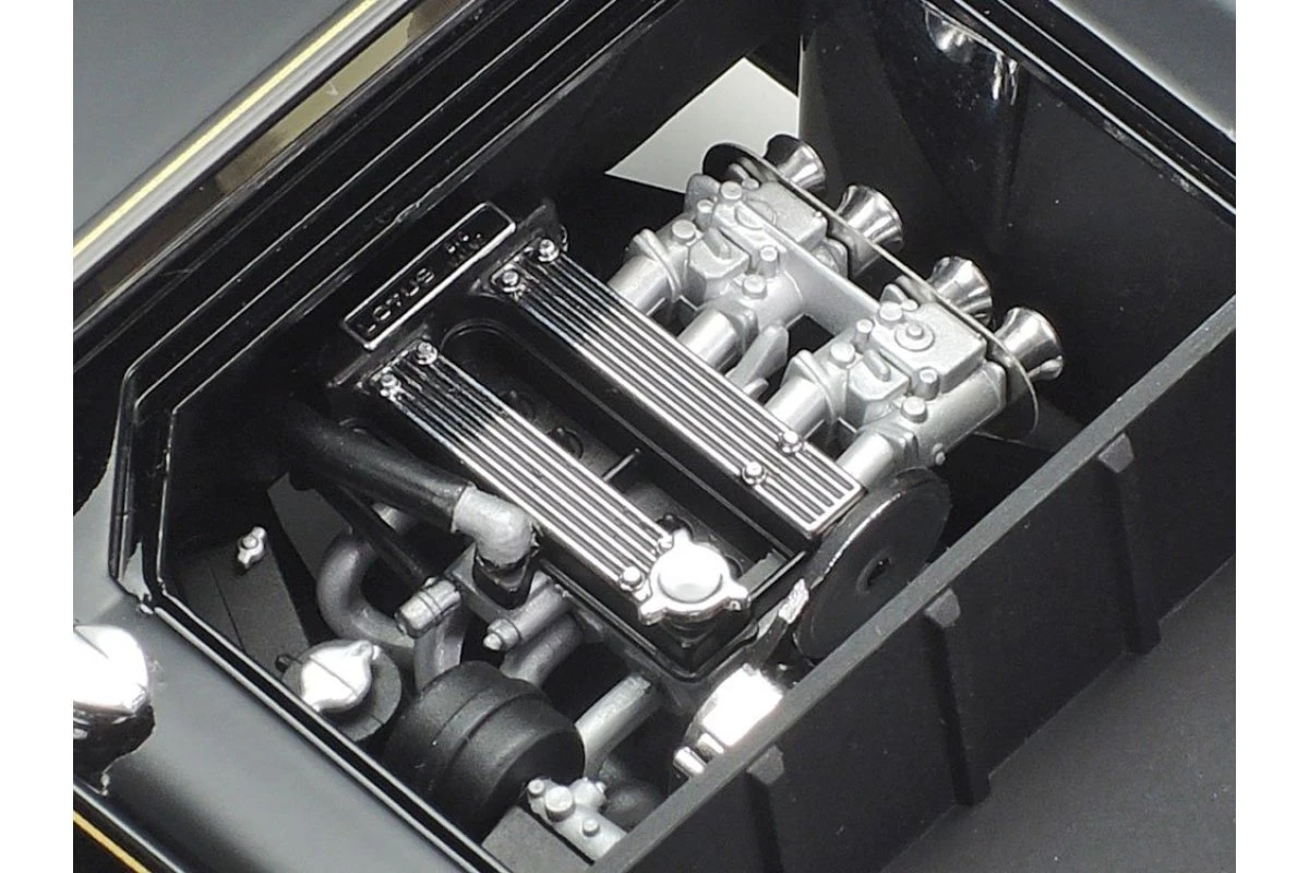 The detailed DOHC inline-four engine has metal air funnel parts for an even more realistic finish.