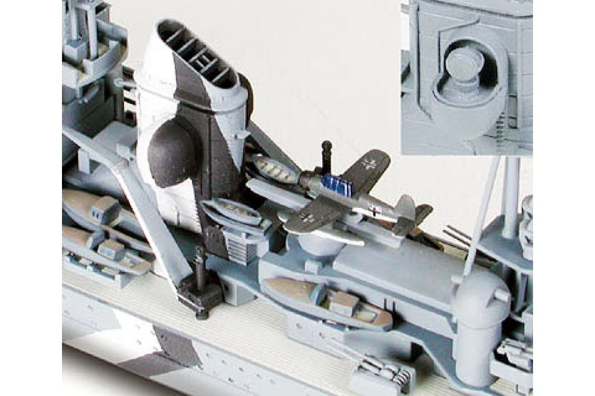 Equipment and armament faithfully recreated. Prinz Eugen can be assembled as it appeared in two different operations: Operation Rheinubung, 1941 and Operation Cerberus, 1942. In Operation Cerberus, Prinz Eugen was equipped with 5 additional 20mm AA-gun quadruple turrets for the “Channel Dash.”