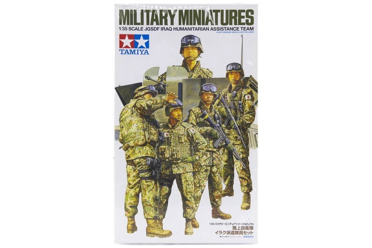 Coinciding with the release of the JGSDF light armored vehicle used in Iraq in the 1/35 scale MM Series, Tamiya introduces a set of 1/35 scale JGSDF figures. Set includes 5 figures, 1 team leader holding binoculars, 1 sub-leader pointing, 2 soldiers on patrol holding 5.56mm automatic rifles, and 1 soldier designed to be placed in the JGSDF Light Armored Vehicle. This figure set is perfect for adding that finishing touch to your light armored vehicle or for creating a realistic diorama.