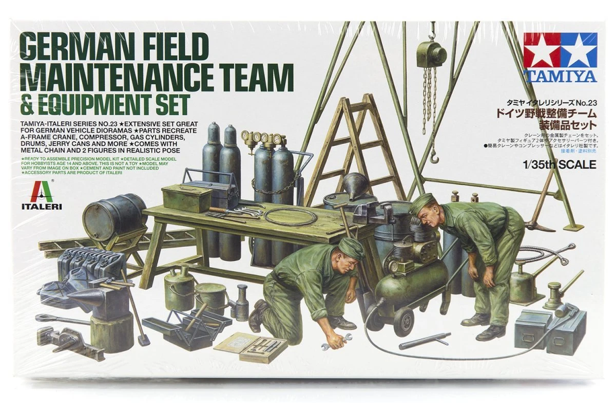 This is a Tamiya-Italeri Series model kit based upon the Italeri 1/35 Field Work Shop kit. This set has newly-molded parts, plus Tamiya figures, accessories and instruction manual, all packaged in a new Tamiya box! It can be constructed into a diorama by itself, or used in conjunction with products from Tamiya”s huge range of German vehicle model assembly kits to create a highly realistic diorama scene.