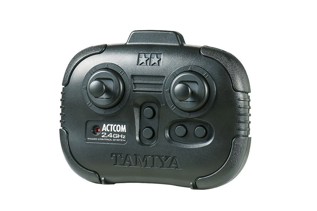 The dedicated stick-type transmitter allows control of turret and gun, as well as the tank itself.
