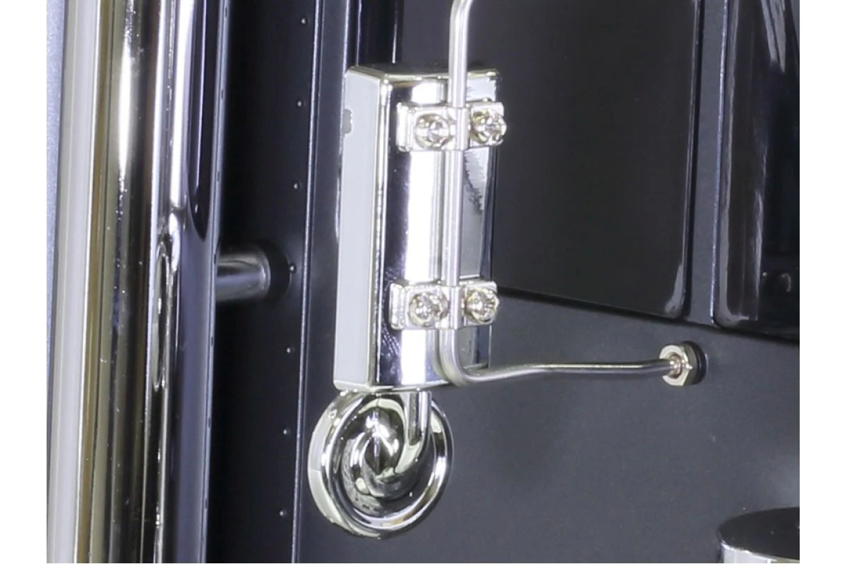 The model’s ladder frame chassis features aluminum side channels with resin cross members and is equipped with a highly realistic suspension utilizing metal leaf springs and friction dampers. A front-mounted motor and 3-speed transmission power the two rear wheel axles, which are fitted with built-in differentials to enable smooth cornering. A 4-channel R/C system and multi-function unit allow you to drive the vehicle and experience realistic lights, sounds and vibrations. (Both sold separately)