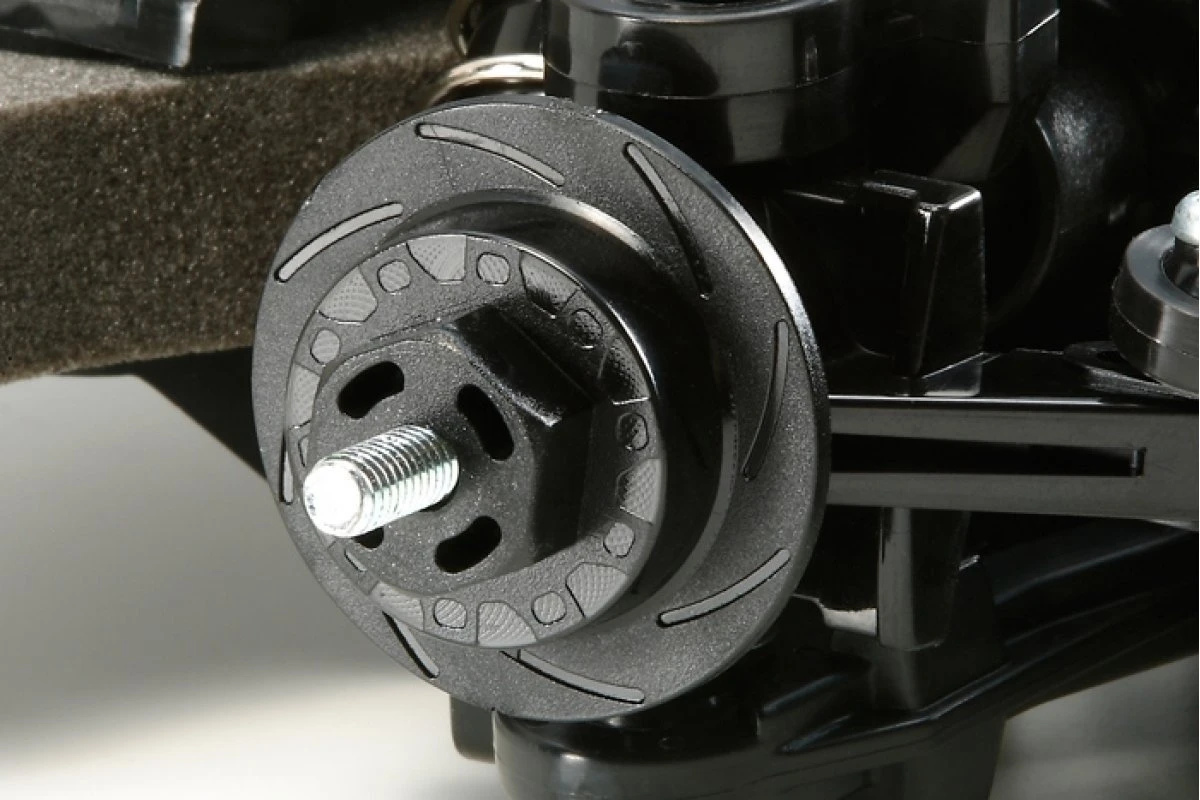 The shaft driven 4WD TT-02 chassis employs a longitudinal layout with the battery on the left and the motor on the right, to offer excellent stability. In addition, it features identical left and right suspension arms and uprights for ease of assembly, plus easy-to-maintain gearboxes. It is a highly adaptable chassis, as it offers 2 different wheelbases, 2 ground clearance settings (the higher position is used with the Lancia Delta Integrale) and 2 tread set-ups in addition to a range of 10 possible gear ratios. It is not short on looks either, with brake disc-shaped wheel hubs and stylish front bumper supports.
