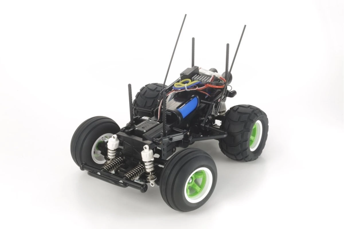 The original Grasshopper needs little introduction. It was a Tamiya legend which inspired legions of fans since the 1980s. For many, it was their very first introduction into the world of radio control assembly kits. The original Grasshopper is still among Tamiya’s best-selling kits to this day. Now the legend is re-imagined as the Comical Grasshopper, with a new body inspired by the famous original. The re-imagined body sits on a new and dedicated variant of the proven off-road chassis: the WR-02CB.Â