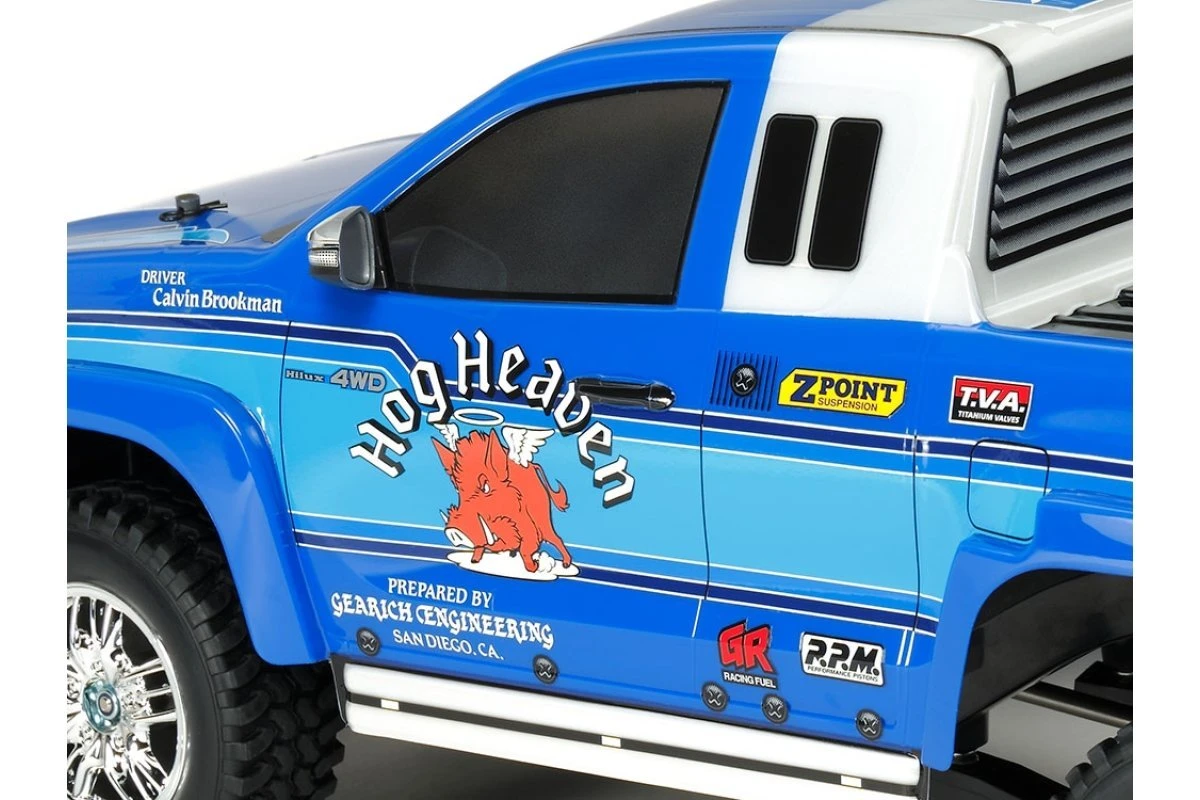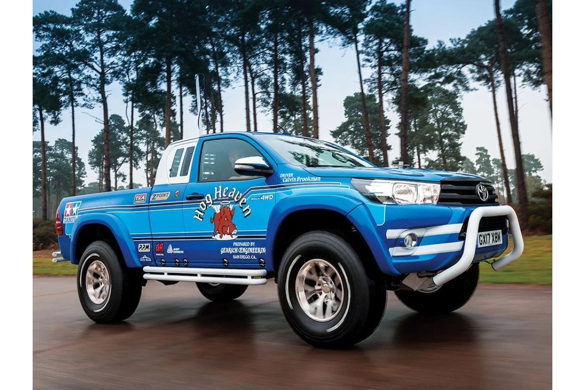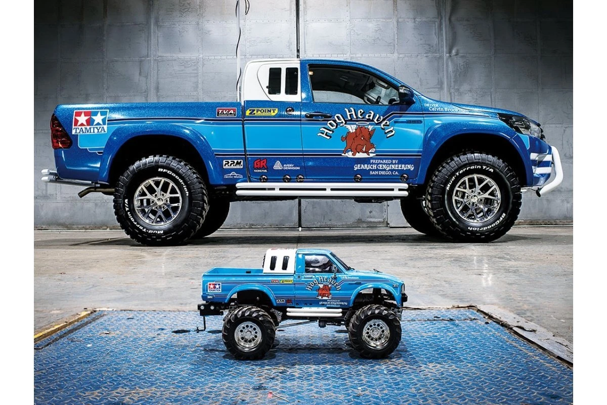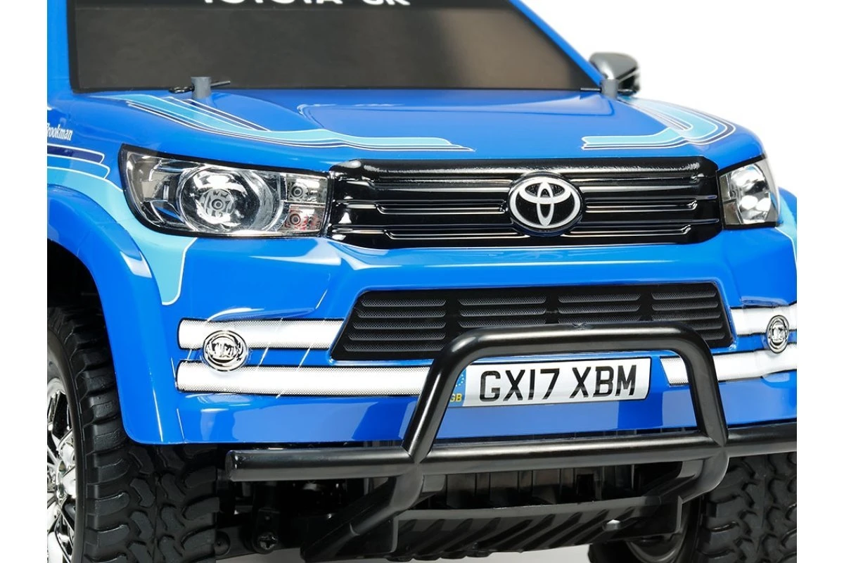 This model recreates the classic Toyota Hilux in the form of a new polycarbonate body mounted on the reliable and fun CC-01 cross country chassis. The kit depicts the 8th generation of the Hilux vehicle, released back in 2015, specifically a special full-size version of the Extra Cab which Toyota’s British division had made in the colors of Tamiya’s legendary Bruiser as a tribute to our model. It also appeared in some high-profile PR activities in Great Britain.