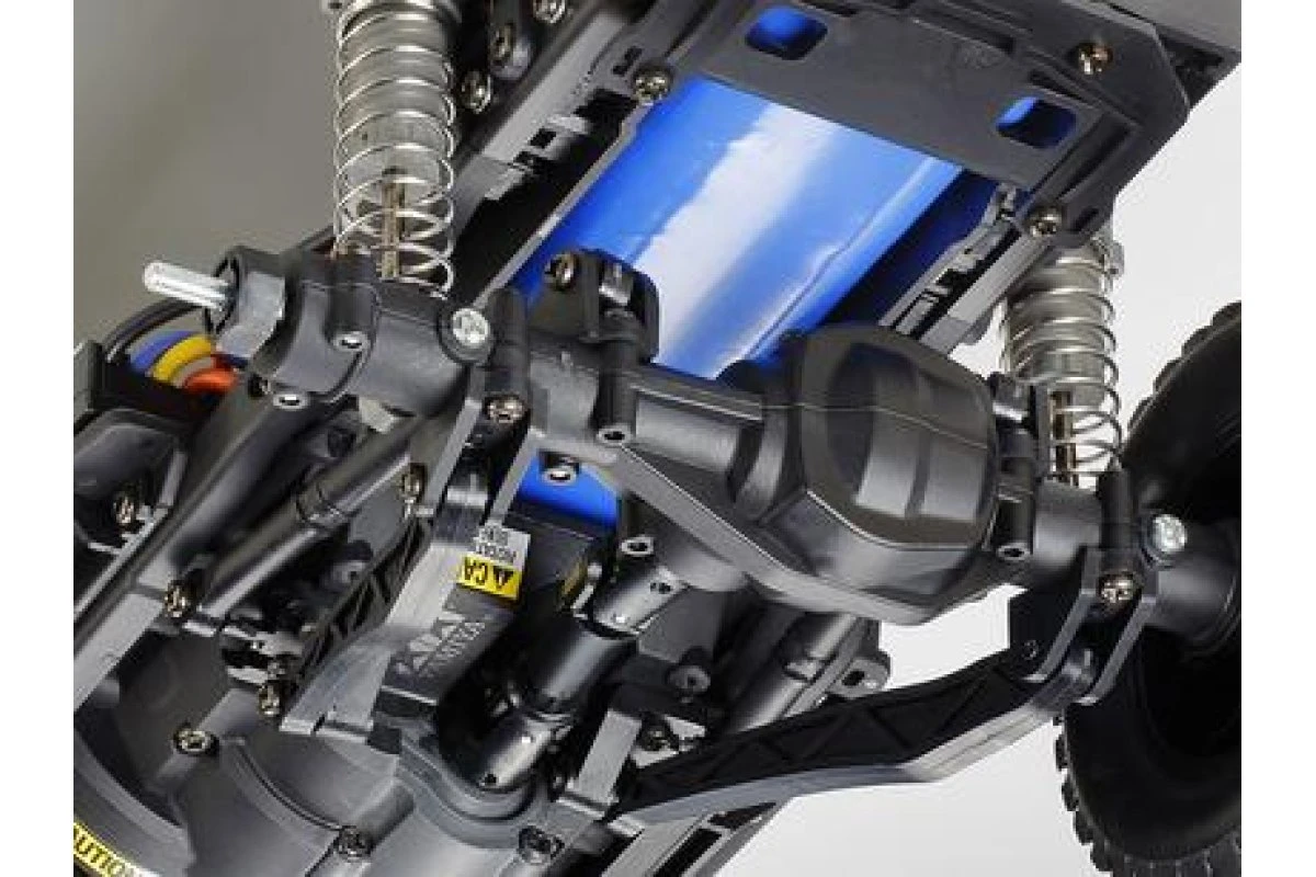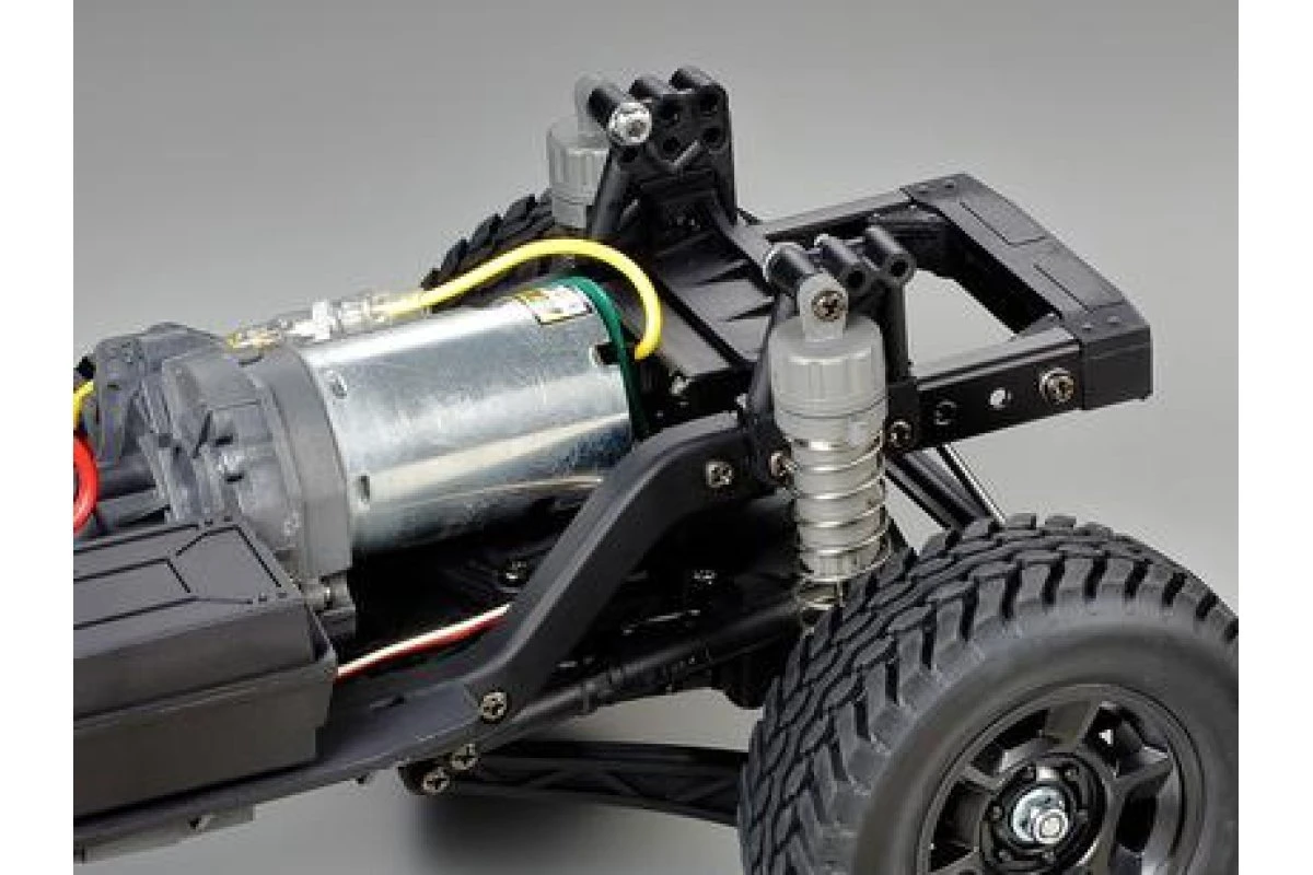 - The ladder frame CC-02 chassis features superior durability and employs front/rear coil spring suspension which is great for off-road surfaces including rocky terrain.