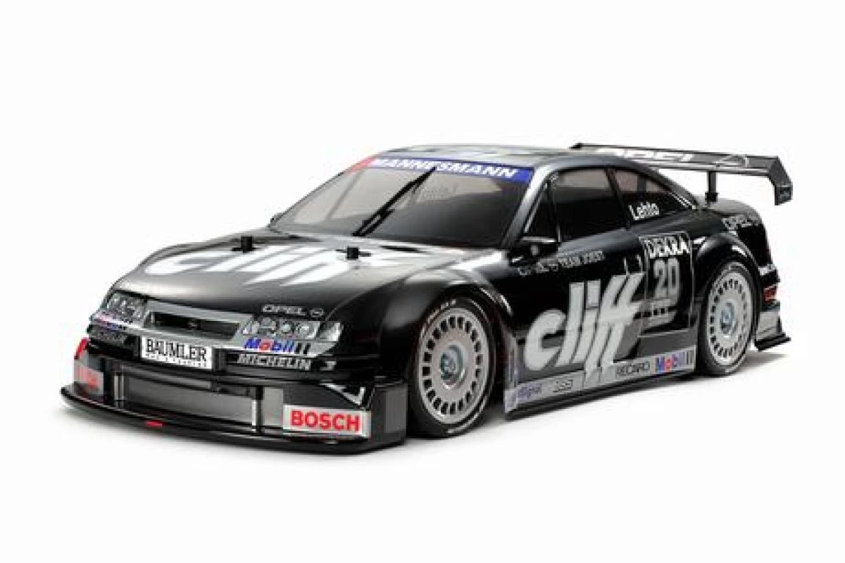 This R/C assembly kit recreates the Opel Calibra V6 Cliff. The polycarbonate body is mounted on the TT-01 Type-E chassis, for ease of assembly. The Opel Calibra V6 Cliff was previously released on the Tamiya TA-02 chassis during the 1990’s touring car boom.