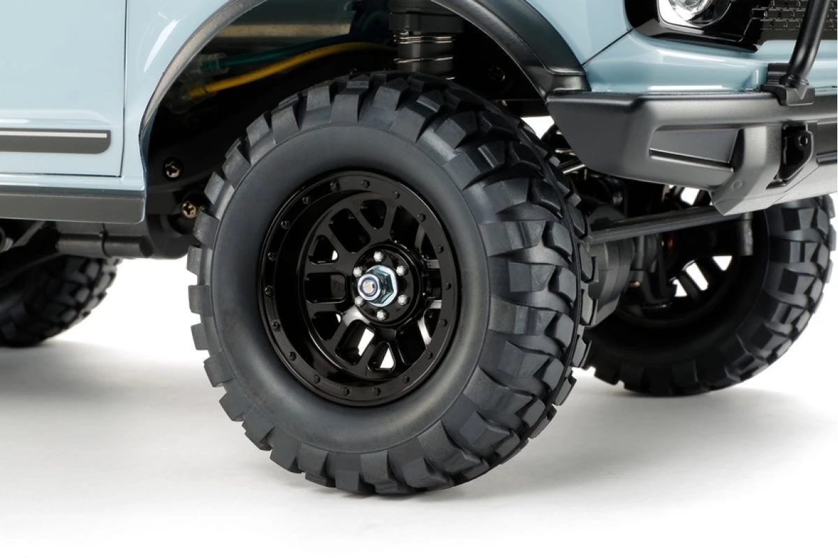 Tamiya’s design team have chosen to give R/C enthusiasts a replica of the best Bronco variant of this new generation. The R/C model assembly kit depicts the 2-door top grade First Edition model. The First Edition Bronco SUV is built for those who have waited patiently for the legend’s return. The First Edition is a loaded Bronco combining the best parts of all Bronco series. First Edition Broncos use the mechanicals of a Badlands, the interior of an Outer Banks and the exterior of a Wildtrak to create the ultimate Bronco! The Tamiya version sits on top of the CC-02 chassis for capable and fun R/C driving on the trails.