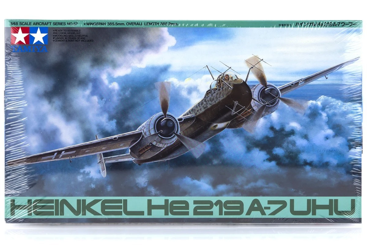 The He 219 was arguably the Luftwaffe’s best nightfighter during WWII and was notable for an extraordinary debut mission in June 1943 when a prototype shot down five RAF Lancaster bombers. This kit depicts the final production variant, the A-7, which was equipped with DB 603G engines for improved high-altitude performance. Distinctive features such as the slim fuselage, greenhouse-style canopy, and tricycle landing gear are all accurately reproduced. The cockpit interior even features an integrated nose weight to ensure the model stays balanced when displayed. Two crew figures and three marking options are also included.