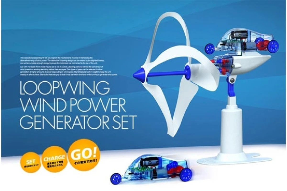 This new educational kit lets you explore the mechanisms involved in harnessing the alternative energy of wind power. The windmill features loop-wing design that can be rotated by the slightest breeze. You can also run while holding it to generate wind artificially. The kit comes with a rechargeable vehicle that uses power generated by the windmill, running for 1-2 minutes for each 5-10 minute of charge.