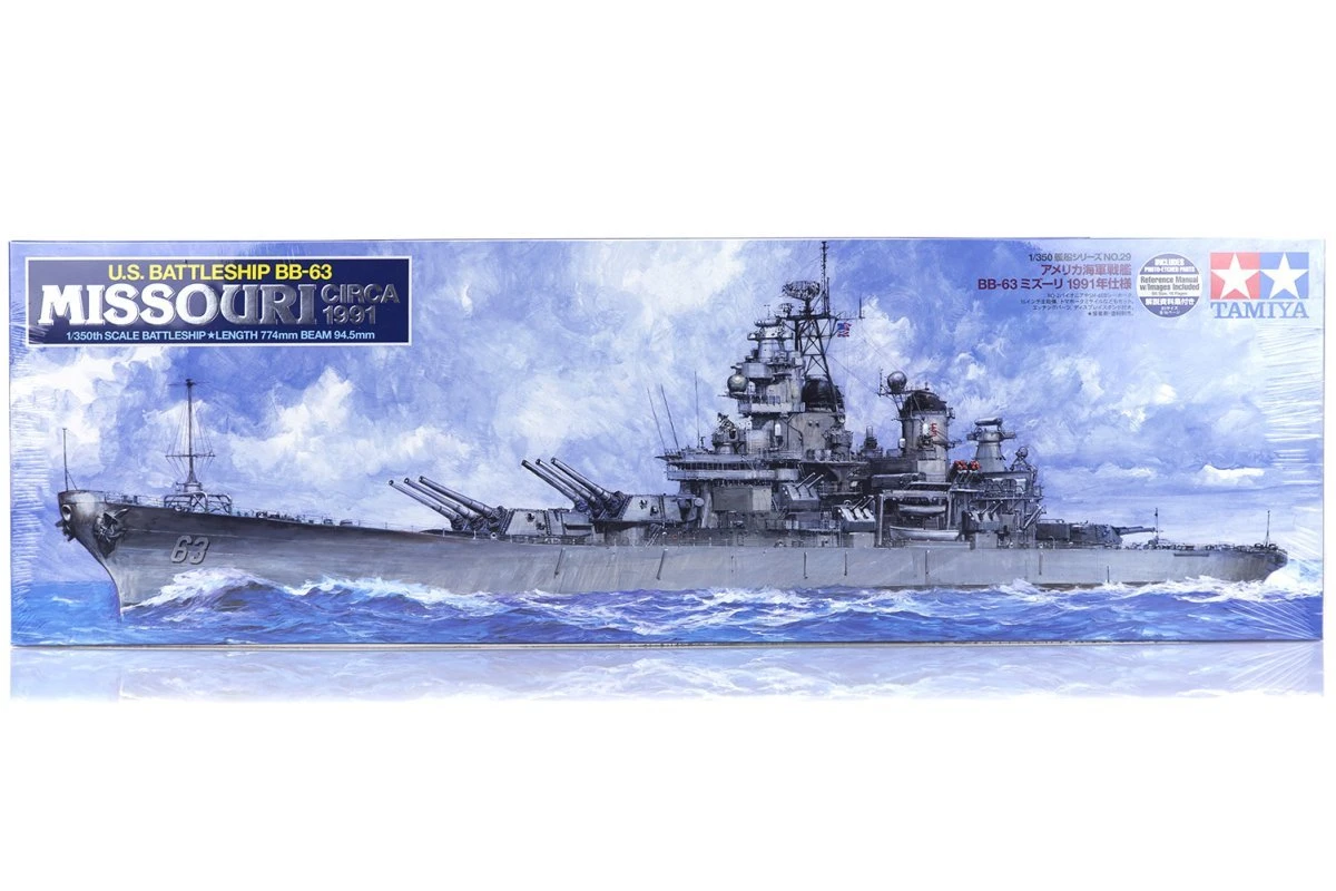 The Tamiya model kit faithfully depicts the Missouri as she appeared in 1991. New parts have been tooled to update the kit.