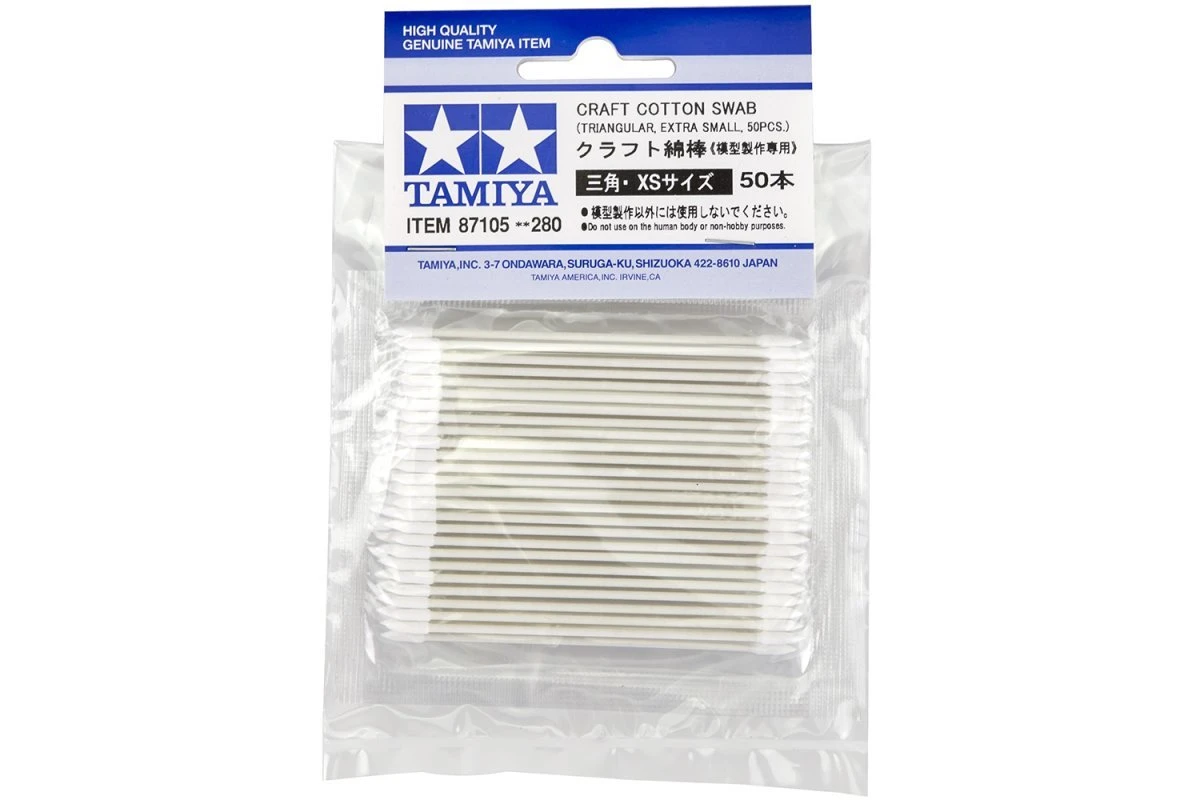 When building a scale model, cotton swabs are often used with painting and applying decals. However, cotton swabs bought from supermarkets usually have loosely spun tips and quickly lose shape. These Craft Cotton Swabs have tightly spun cotton tips and are easy to use, making them much better suited for hobby use.